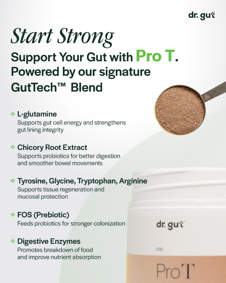 With prebiotics, soluble fiber (Promitor™), digestive enzymes, and chicory root, Pro T strengthens gut function and promotes smoother digestion and creates the ideal foundation for long-term gut resilience.